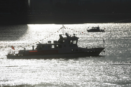 ▲2020年12月31日,在长江流域重点水域“十年禁渔”全面启动仪式现场,渔政执法船队从长江武汉段江面驶过。新华社记者 程敏 摄