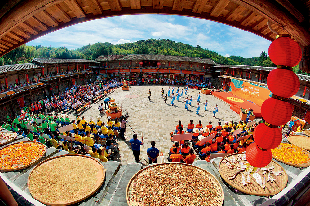 2020年9月20日,福建省大田县济阳乡济阳村“晒秋节”活动现场,人们表演节目庆丰收 林文斌摄/本刊
