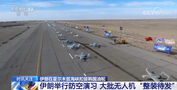 4日伊朗在霍尔木兹海峡扣留了一艘悬挂韩国国旗的油轮,地区局势再次升温。为了应对紧张局势,伊朗数百架无人机“整装待发”。