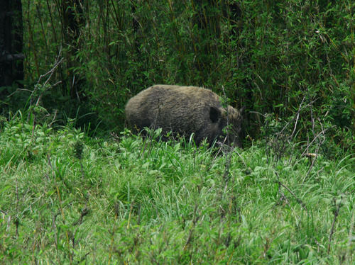 一头野猪出现在陕西省佛坪县三官庙村的玉米田里(资料图片)。新华社发(马亦生摄)