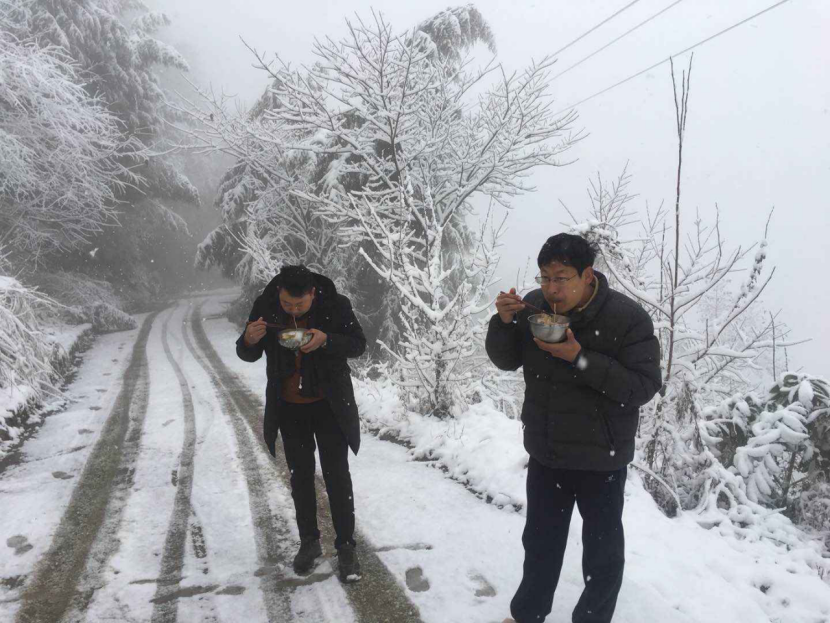 重庆巫溪县红池坝镇九坪村第一书记董鹏(左)
