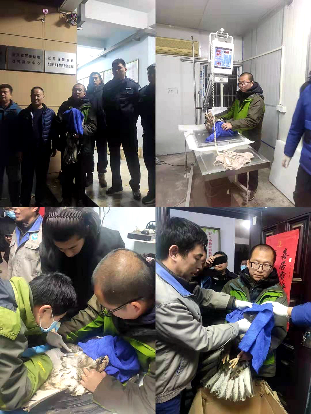 2020年12月2日晚,安徽省太和县公安分局赵庙派出所联系到南京市红山森林动物园野生动物收容救护中心,称他们接收到一只国家一级保护动物——白尾海雕,无法正常活动,常保持伏地的状态,颈部位置好像存在异物。救护中心工作人员随即让对方将其送过来,因为路途颠簸,这只白尾海雕居然将口中的“异物”吐了出来。来到红山森林动物园,救护中心工作人员立刻为白尾海雕(以“1202”作为它的代号)拍摄了颈部X光片,确认“异物”是一只残余的斑鸠,已经全部排出。救护人员对白尾海雕进行了体检,显示体况正常,只是非常瘦弱,脂肪度很低。随后工作人员为其进行补液,提供营养支持,后将其进行安置休养。