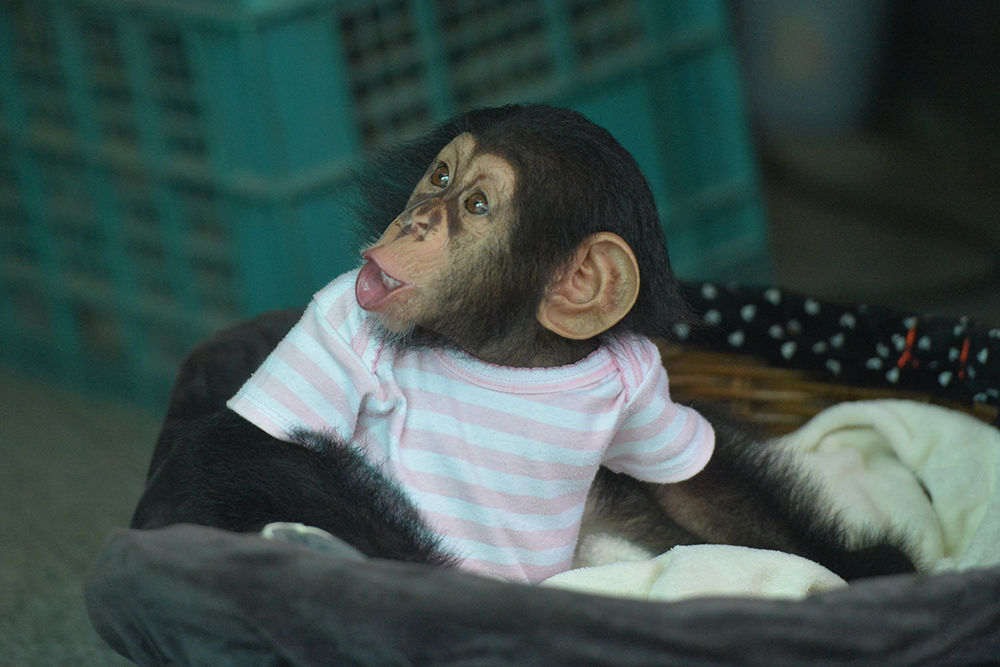 ↑这是2020年9月9日在泰国北榄府一家动物园拍摄的一只五个月大的黑猩猩幼崽。
