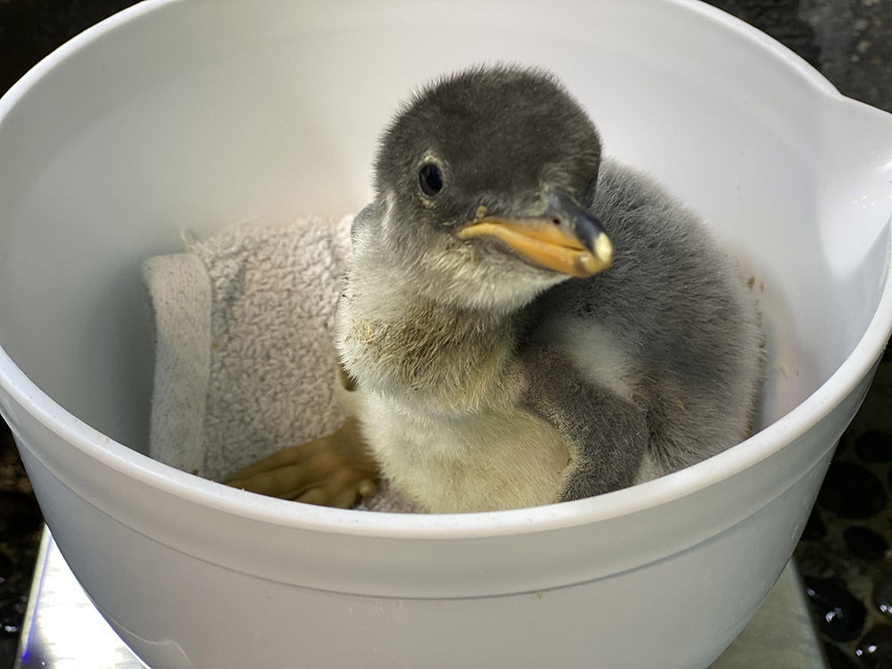 ↑2020年11月6日,在澳大利亚悉尼水族馆,一只小企鹅接受称重。