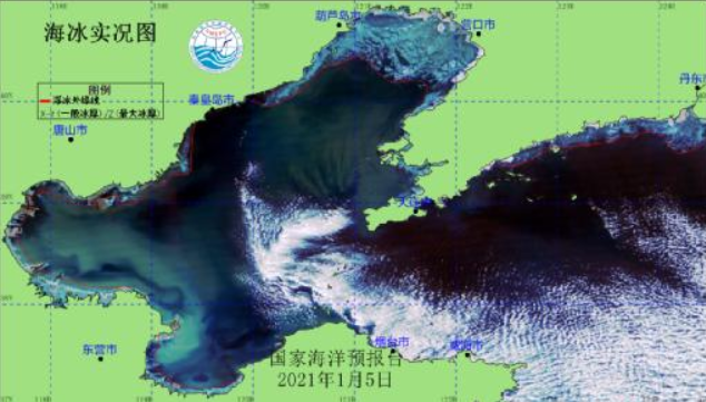 记者今天(6日)从自然资源部国家海洋环境预报中心了解到,受持续低温影响,2020年12月底到2021年1月初,渤、黄海海冰冰情快速发展,辽东湾海冰范围从10海里左右快速增长到40海里。预计1月上旬后期,渤、黄海海域冰情将进一步发展,辽东湾最大浮冰范围将达到50海里以上,渤海湾、莱州湾将达到10~15海里,黄海北部将达到10~20海里。
