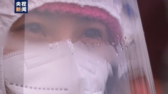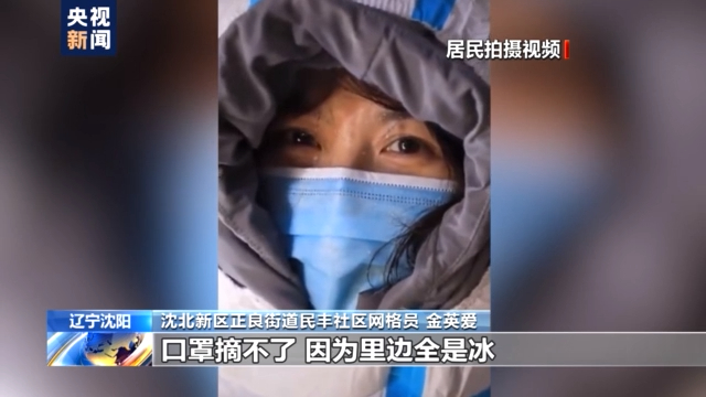 4日,辽宁沈阳的第一轮全员核酸检测接近尾声,当天,沈阳的气温是零下8度到零下22度,因为长时间户外工作,社区防疫人员金英爱的口罩里,全都结了冰,让人心疼。