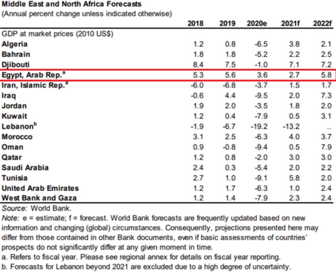 △根据世界银行在2021年1月发布的《2021年全球经济展望》报告,尽管埃及2020年GDP增长率从众多中东和北非国家中“脱颖而出”,但其2021年的增长将进一步下降至2.7%