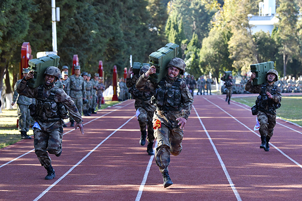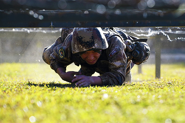 ↑官兵们进行战术基础动作比赛。李家敏 摄