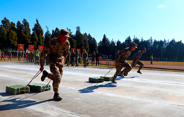↑负重组合练习比赛奋勇争先。李家敏 摄