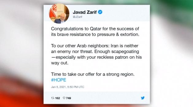 针对沙特等国与卡塔尔同意恢复全面外交关系,伊朗外长扎里夫日前在社交媒体上发文说,祝贺卡塔尔在应对相关压力的过程中获得胜利。他说,对伊朗的阿拉伯邻国来说,伊朗不是敌人,也不是威胁。是时候努力建立一个强有力的地区了。