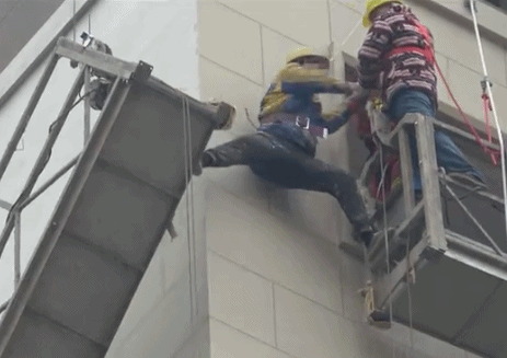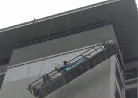 近日,江苏常州一家工地上因设备故障,两名工人被困在高层住宅外墙,吊篮严重倾斜,还有再次滑落危险。