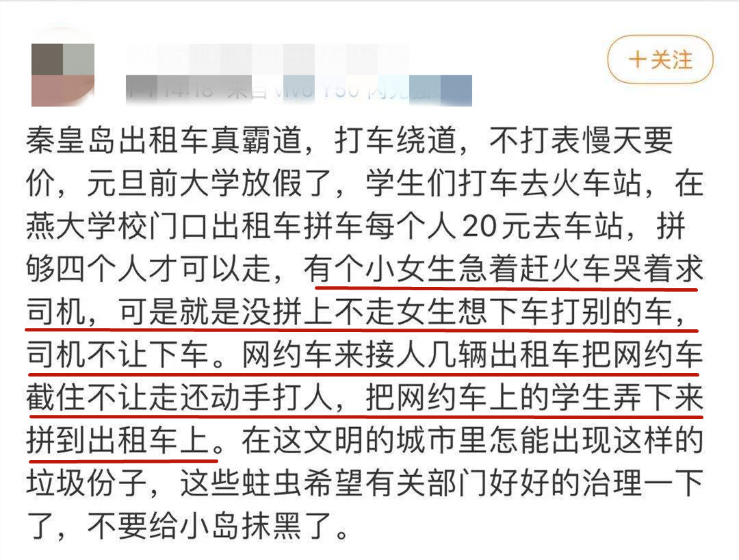 除了遇到出租车司机“蛮横”抢客外,还有不少人反映,在秦皇岛打出租车时常遇到绕道、拒载、不打表、随意要价等情况。