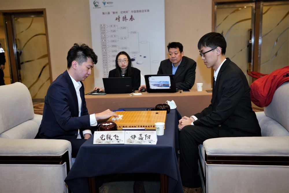 党毅飞是许嘉阳通往决赛路上斩落的第三位世界冠军,此前他分别击败了周睿羊和檀啸。当天许嘉阳执黑先行,战局一直呈僵持状态,临近官子双方在右上角形成劫争,党毅飞出现失误黑棋占优,最终至267手许嘉阳以3/4子胜出。