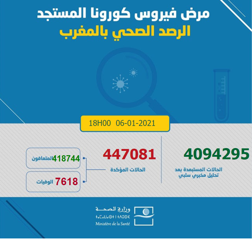 摩洛哥卫生部1月6日证实,该国在过去24小时新增1642例新冠肺炎确诊病例、37例死亡及2036例治愈。截至目前,摩洛哥已经累计确诊新冠病例447081例,死亡7618例,治愈418744例。