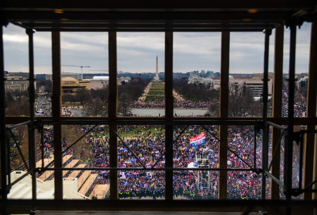 美国东部时间1月6日下午,在美国国会举行两院联席会议审议和认证各州选举人团票的同时,美国总统特朗普亲自参加了在华盛顿举行的支持者集会,他拒绝承认败选,并呼吁正在国会主持审议会议的副总统彭斯否决各州提交的选举结果。演讲结束后,许多抗议人士冲进国会大楼大厅,审议工作暂停。
