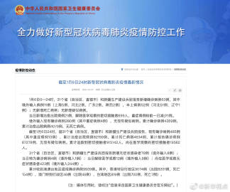 截至1月6日24时,据31个省(自治区、直辖市)和新疆生产建设兵团报告,现有确诊病例485例(其中重症病例13例),累计治愈出院病例82159例,累计死亡病例4634例,累计报告确诊病例87278例,无现有疑似病例。累计追踪到密切接触者915142人,尚在医学观察的密切接触者19582人。