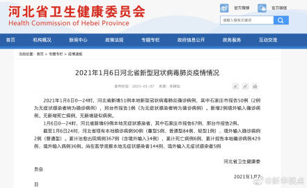 #严防疫情反弹# 【1月6日0—24时,#河北省新增51例本地新型冠状病毒肺炎确诊病例#】2021年1月6日0—24时,河北省新增51例本地新型冠状病毒肺炎确诊病例,其中石家庄市报告50例(2例为无症状感染者转为确诊病例),邢台市报告1例(为无症状感染者转为确诊病例)。新增2例境外输入确诊病例。无新增死亡病例,无新增疑似病例。