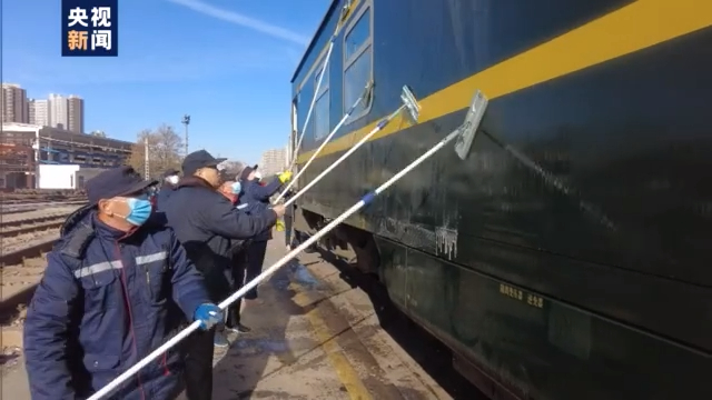 在中国铁路郑州局集团有限公司郑州车辆段,有一个刷车班,不论早晚,只要远归的列车入库,他们都要在户外手工作业,完成火车外观的二次清洁,让车辆整洁安全。寒潮来袭,也给清洗工作增加了不少难度。
