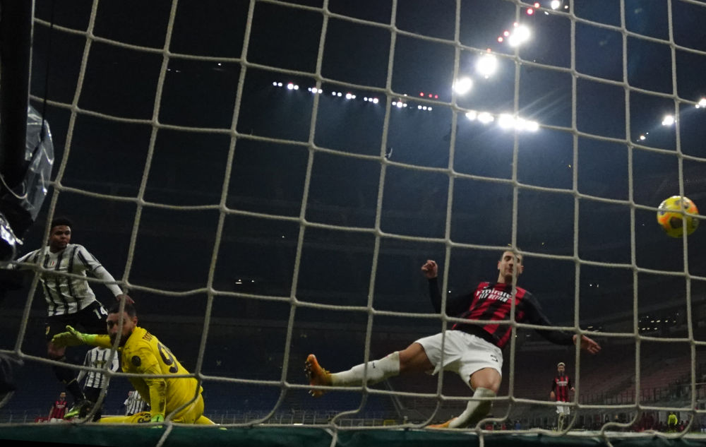 AC米兰经过几次射门尝试后,在上半时尾声将比分扳平,卡拉布里亚接莱奥的传球打进一粒精彩的射门,虽然尤文认为对方球员在进攻中对拉比奥犯规在先,但是VAR并未介入。