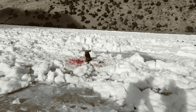 流出的鲜血将周围的冰雪染红