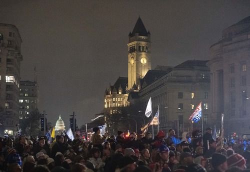 1月6日晚,美国首都华盛顿市内示威活动现场。新华社记者刘杰摄
