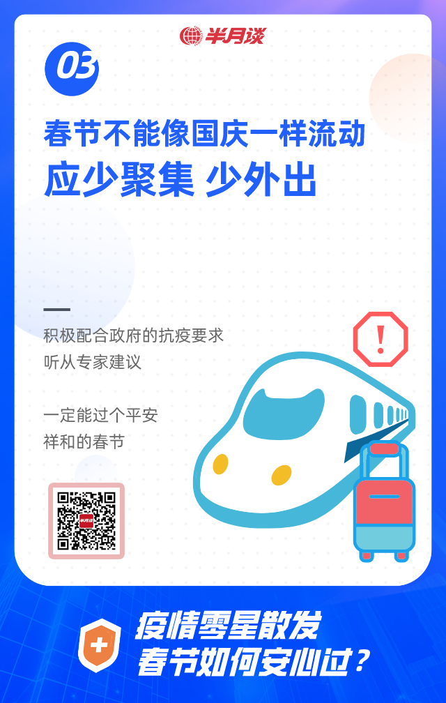 在此背景下,春节的脚步也越来越近。去年疫情暴发时,春节假期已经开始,大部分人都回到了家,或正在回家的路上。今年疫情在国内零星散发,而距离春节假期还有将近一个月的时间,我们究竟怎么做,才能过个平安年?
