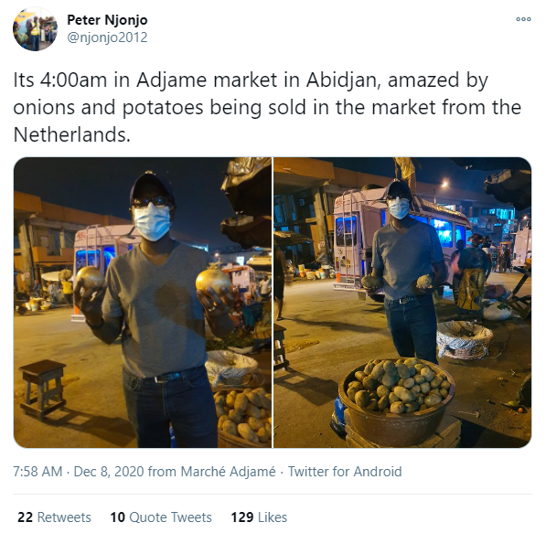 这是非洲企业家彼得·恩乔恩乔于2020年12月8日发布的推文截图。