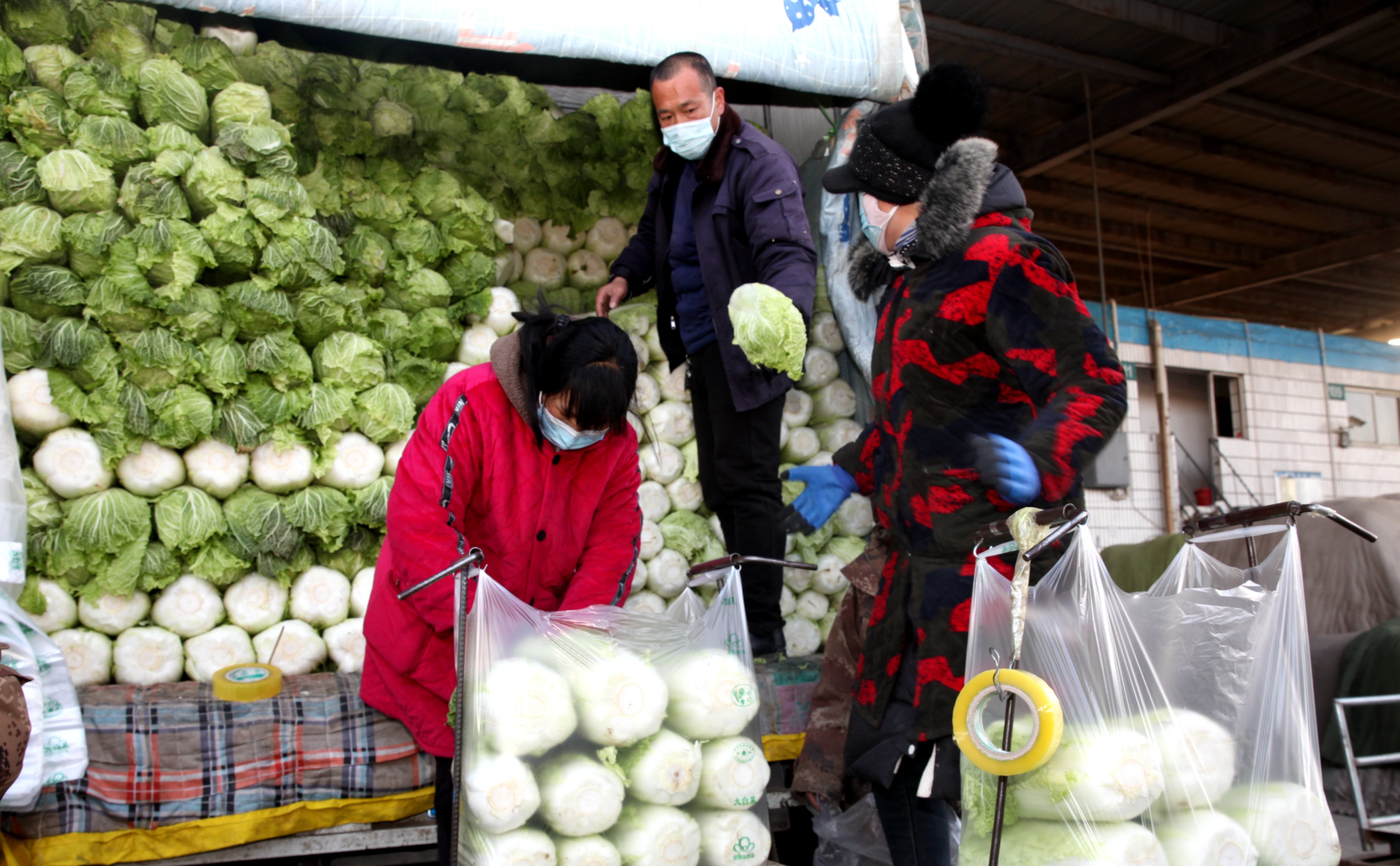 1月6日,在石家庄市桥西蔬菜中心批发市场,工作人员在整理蔬菜。新华社发(张文静 摄)