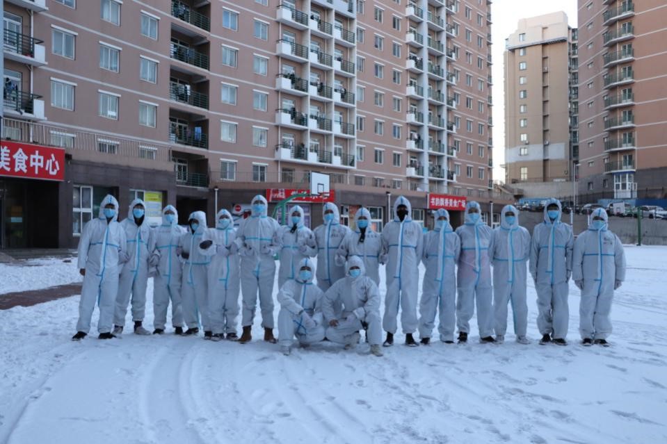 这段视频拍摄于大连海洋大学。2020年12月21日,为应对疫情,学校立即封闭校园,学生在宿舍隔离,一日三餐、生活和防疫物资均由教职工和学生组成的志愿者队伍统一配送。
