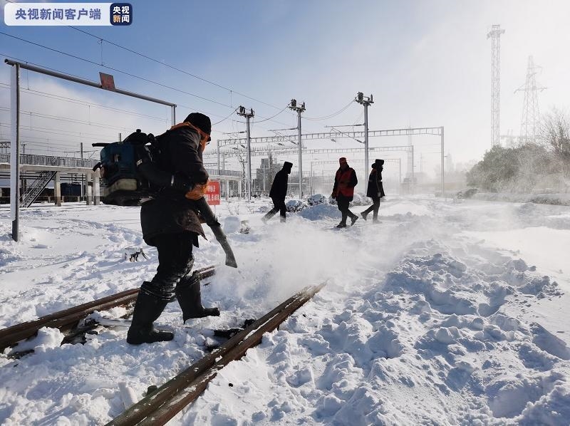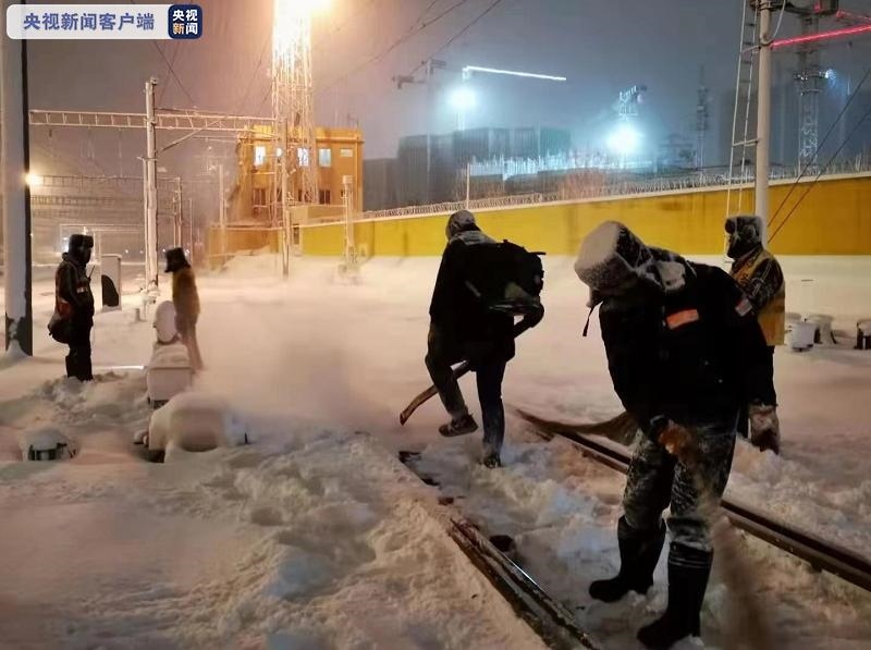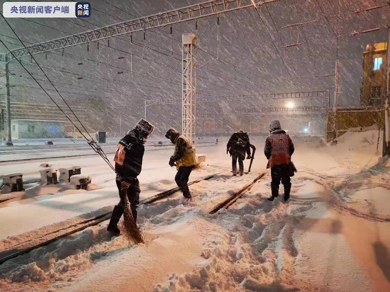 铁路部门启动应急预案:铁路工务部门成立除雪应急分队,组织近300名职工冒雪上线,对9个车站120组铁路道岔设备实施不间断除雪作业,最大限度减少寒潮天气影响,及早恢复列车运行秩序。