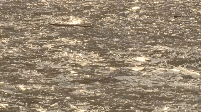 随着湖风吹动,冰碎“随波逐流”被一波波推向岸边,在沙滩与湖面交界处又一层层堆砌起来,远远看过去就像一条蜿蜒连绵的白色绸缎。走近岸边,波浪不断拍打湖岸,冰碎交织在一起,碰撞的声音好似风铃,吸引了市民驻足欣赏和拍照。(总台央视记者 吴睿 陆鹏宇 宿迁台)