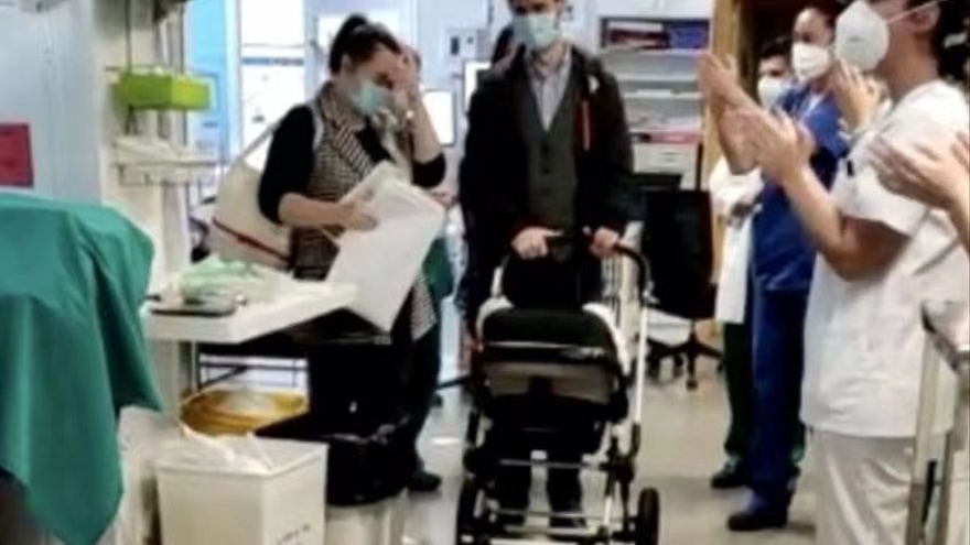 这名婴儿一开始是呼吸系统出现问题,随后出现进食困难等症状。在经历了漫长的康复期后,他的新冠病毒检测结果已经转为阴性,终于病愈出院。(总台记者 魏帆)