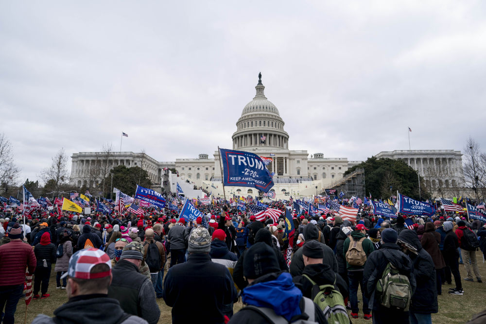 大批示威者挥舞着美国国旗或自制旗帜,高喊支持总统特朗普的口号。他们冲破国会广场前围栏后,又冲进国会大厦,刚开始不久的参众两院认证2020年大选结果的联席会议被迫中断。示威者们认为,这是他们推翻民主党人拜登当选总统这一选举结果的最后机会。