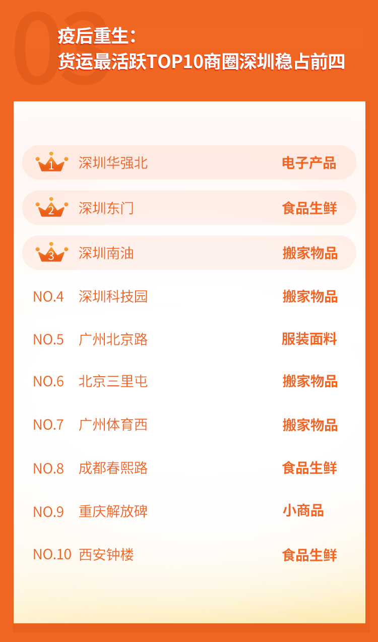 全国Top10商圈货运订单量