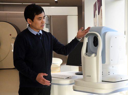 北京图湃影像科技有限公司总经理王颖奇介绍超高速眼科扫频OCT(新华社记者任超1月5日摄)