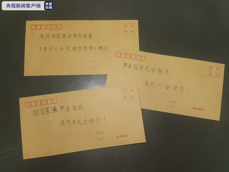 信封上写着,“原来国泰民安,就是有你们的坚守”,“明日晨曦终会抵达,因为平凡才伟大!”。