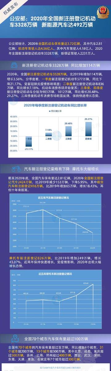 【2020年,你买车了吗?】据公安部统计,2020年全国机动车保有量达3.72亿辆,其中汽车2.81亿辆;机动车驾驶人达4.56亿人,其中汽车驾驶人4.18亿人。#2020年全国新注册登记机动车3328万辆#,新领证驾驶人2231万人。(记者刘奕湛)