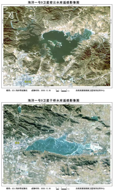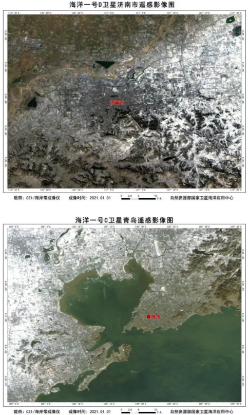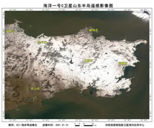 据海洋卫星公众号消息,从海洋卫星遥感实况小程序发现海洋二号、中法海洋卫星获取的2020年12月29日、30日渤海、黄海、东海海域海面风速在增大;从海洋一号C、D卫星图像上发现辽东湾海冰范围扩展较快,北方陆地多数江河湖泊、水库的冰面增加,同时可看到山东、江苏、淮北多地普降大雪。
