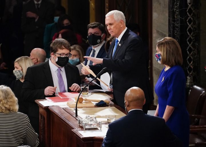 美国国会参众两院6日下午召开联席会议,统计并认证2020年总统选举各州选举人团计票结果。由于支持特朗普的示威者冲入国会大厦,议员被迫疏散,一度休会6个多小时,7日凌晨最终确认民主党人约瑟夫·拜登赢得306张选举人票、当选下一任总统,共和党人特朗普获得232张选举人票。