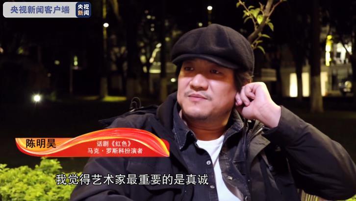 话剧《红色》马克·罗斯科扮演者 陈明昊:我觉得艺术家最重要的是真诚,就是你感觉到了什么,然后你想表达什么。我没去想更多的,就说还原于真实的罗斯科。就像艺术一样,他跟你有关系的,一定是你自己有感觉,你自己能够认知到的。