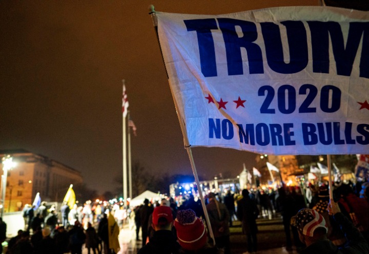 1月5日,美国总统特朗普的支持者在首都华盛顿参加集会。从5日起,上万名美国右翼选民在总统特朗普号召下,从各州赶赴华盛顿。新华社记者刘杰摄