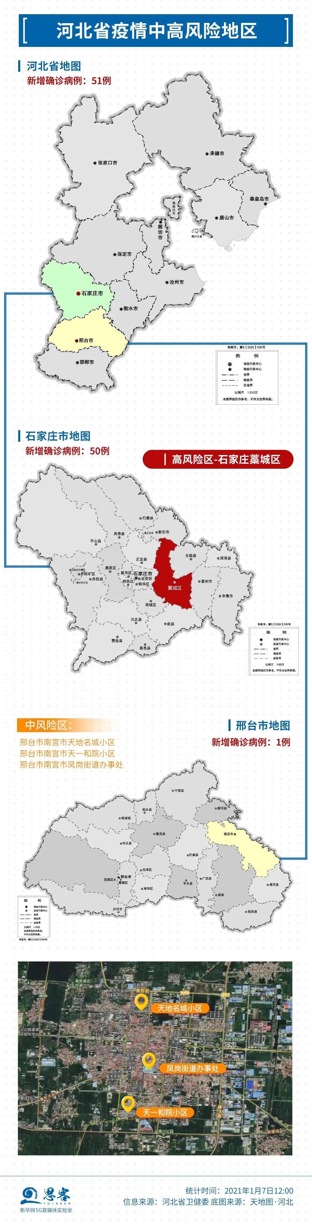 据河北省卫生健康委消息,2021年1月6日0—24时,河北省新增51例本土确诊病例,其中石家庄市报告50例(2例为无症状感染者转为确诊病例),邢台市报告1例(为无症状感染者转为确诊病例)。新增69例本地无症状感染者,其中石家庄市报告67例,邢台市报告2例。