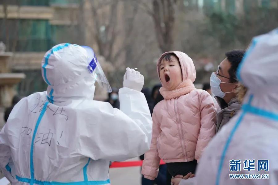 ▲1月6日,一名小朋友在石家庄市桥西区恒大城内接受核酸采样。新华社记者 牟宇 摄