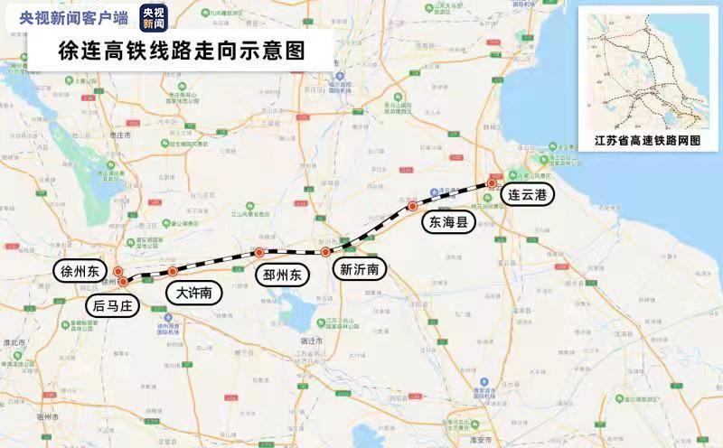 徐连高铁位于江苏省北部黄淮平原地区,西起徐州市,东至连云港市,沿线经过徐州市经济开发区、铜山区、邳州市、新沂市,连云港市东海县、海州区,正线全长约180公里,设计时速为350公里。全线设置徐州东、后马庄、大许南、邳州东、新沂南、东海县、连云港等7座车站。