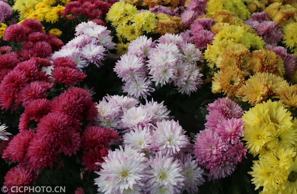 ↑在河北省邢台市广宗县一花卉棚内拍摄的菊花。CICPHOTO/祝雪威 摄