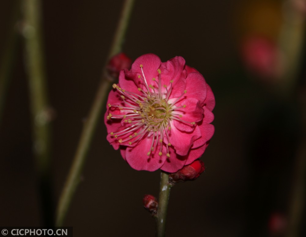 ↑在河北省邢台市广宗县一花卉棚内拍摄的梅花。CICPHOTO/祝雪威 摄