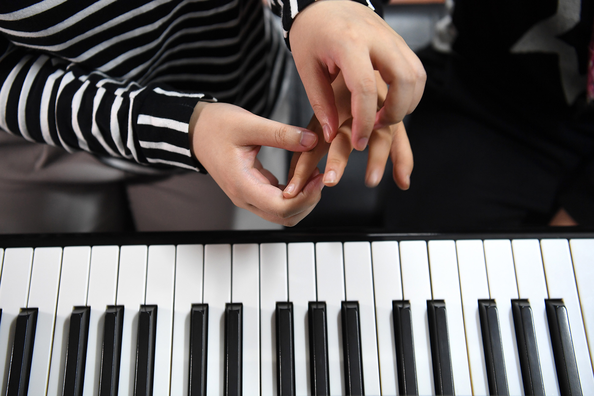 ▲2020年6月18日,王香君在合肥特殊教育中心教视障儿童练习钢琴。