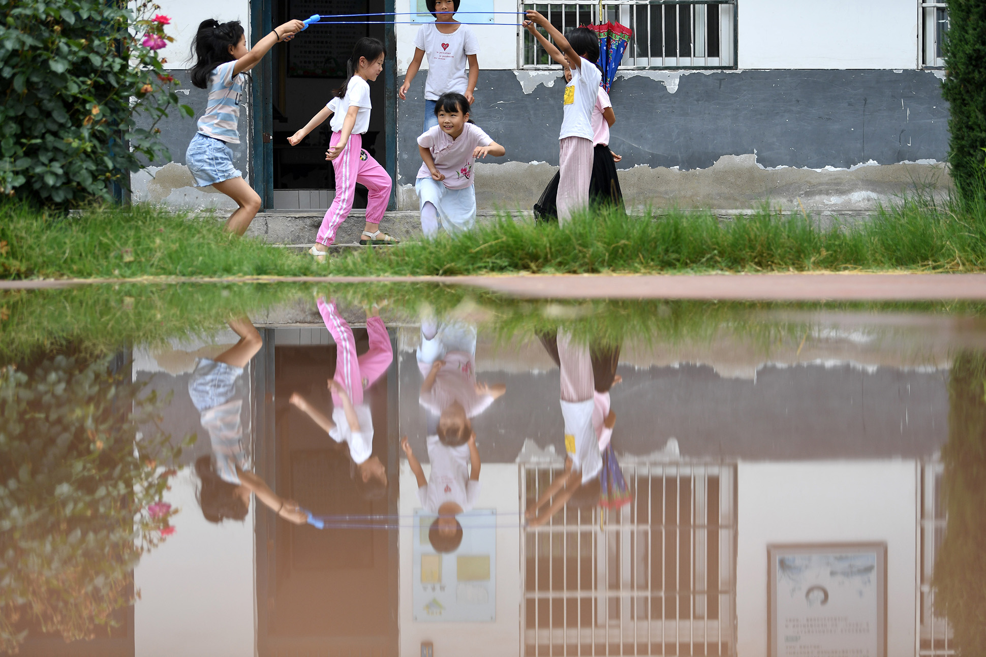 ▲2020年6月10日,楚思扬课间和同学在校园里玩耍。