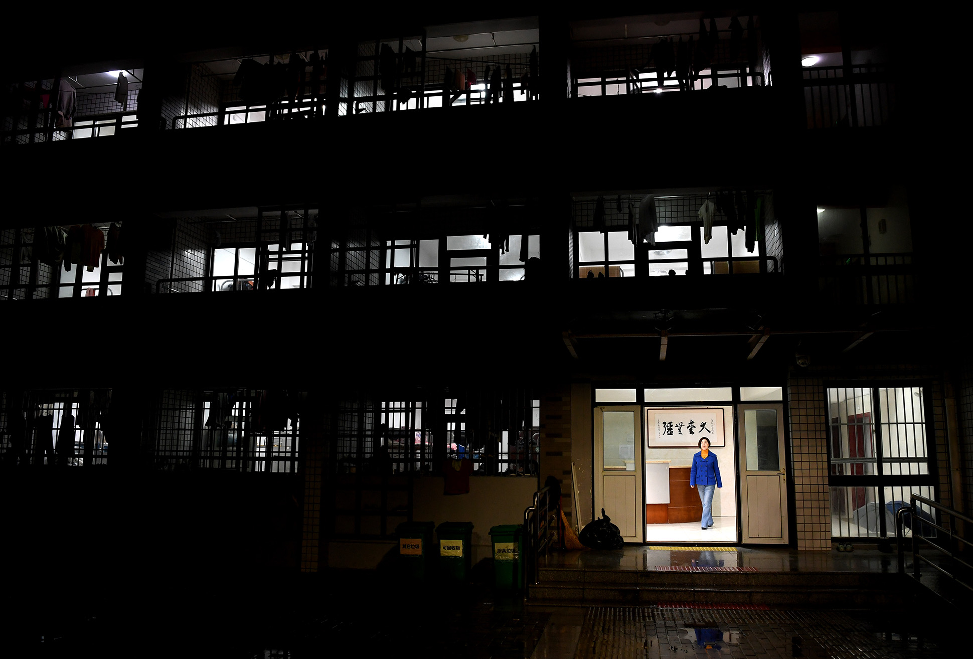 ▲2020年11月25日,席蔚菁晚上巡查完学生宿舍,走出宿舍楼。