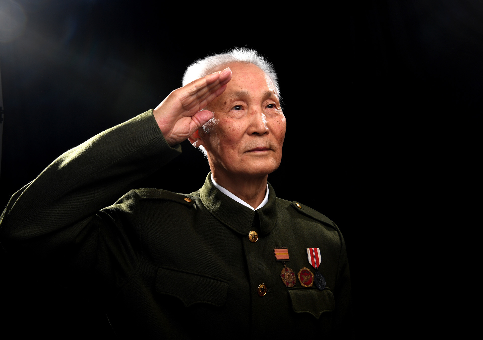 ▲在安徽省淮南市拍摄的志愿军老战士周文(2020年9月24日摄)。